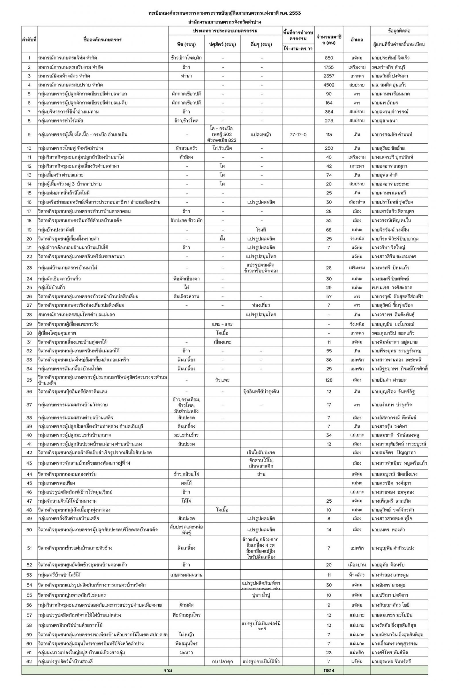 ข้อมูลขึ้นทะเบียนองค์กรเกษตรกร