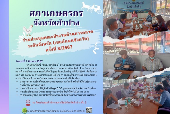 สภจ.ลำปางร่วมประชุมคณะทำงานด้านการตลาดระดับจังหวัด (เซลล์แมนจังหวัด) ครั้งที่ 3/2567