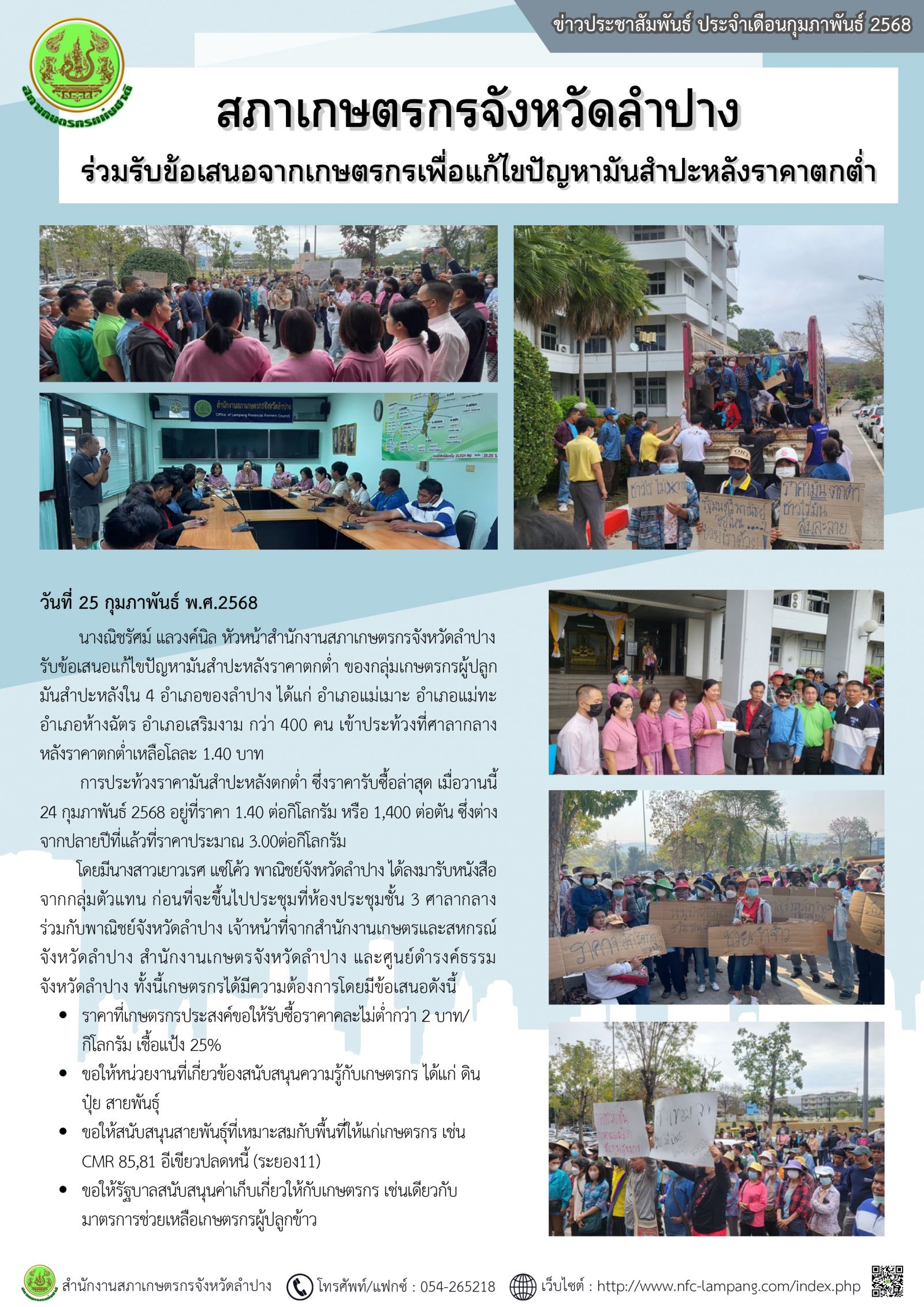 ร่วมรับข้อเสนอจากเกษตรกรเพื่อแก้ไขปัญหามันสำปะหลังราคาตกต่ำ