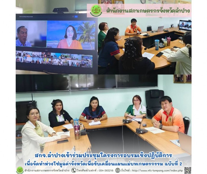 นางณิชรัศม์ แลวงค์นิล หัวหน้าสำนักงานสภาเกษตรกรจังหวัดลำปาง มอบหมายให้นางสาววรุณ ชุ่มเป็ง หัวหน้าส่วนยุทธศาสตร์การเกษตร พร้อมด้วยเจ้าหน้าที่สำนักงานสภาเกษตรกรจังหวัดลำปาง เข้าร่วมประชุมโครงการอบรมเชิงปฏิบัติการเพื่อจัดทำห่วงโซ่มูลค่าจังหวัดเพื่อขับเคลื่อนแผนแม่บทเกษตรกรรม ฉบับที่ 2 ผ่านระบบประชุมทางไกลสื่ออิเล็กทรอนิกส์ (Zoom Meeting)