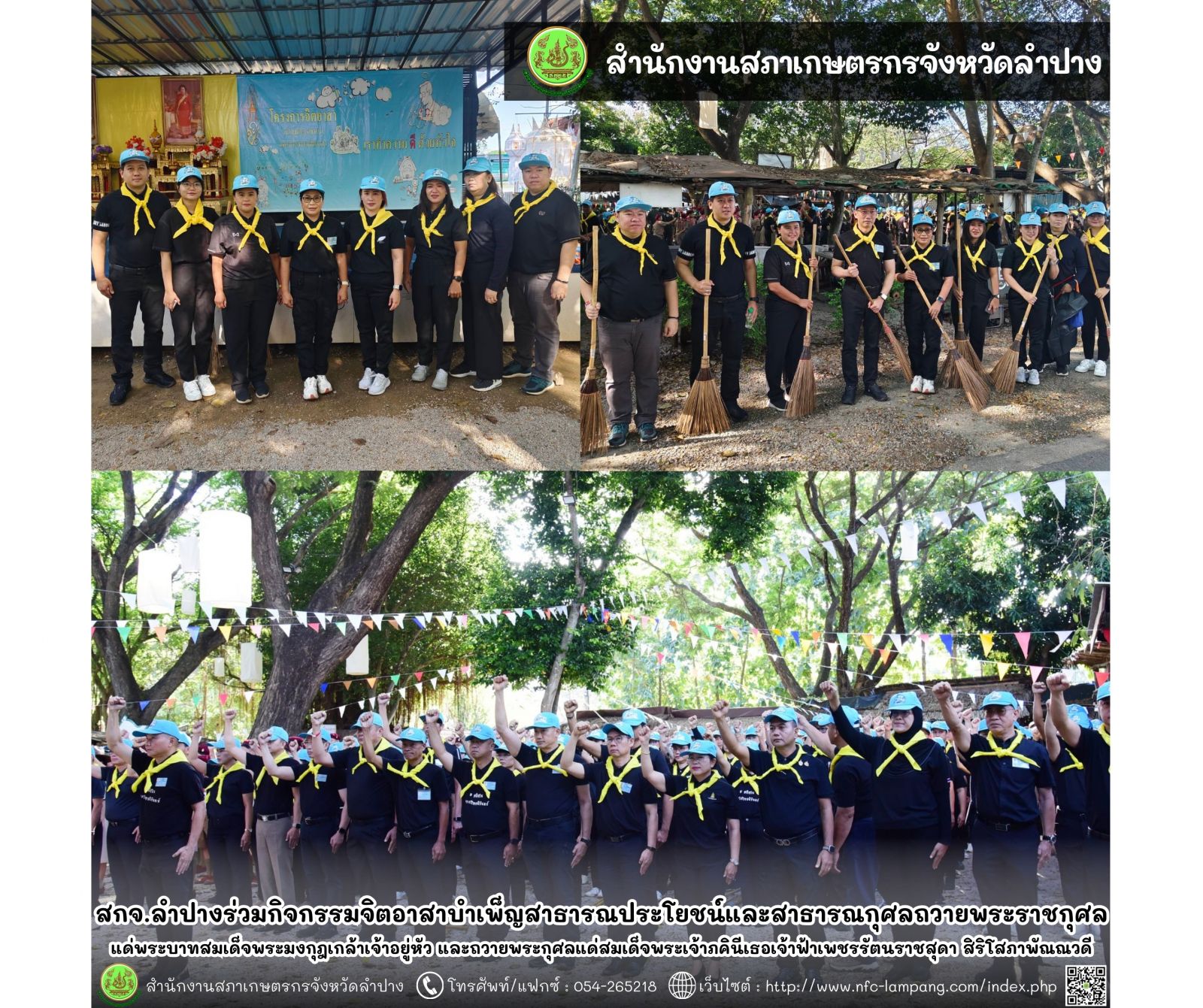 นางณิชรัศม์ แลวงค์นิล หัวหน้าสำนักงานสภาเกษตรกรจังหวัดลำปาง พร้อมด้วยนเจ้าหน้าที่ ฯ เข้าร่วมกิจกรรมจิตอาสาบำเพ็ญสาธารณประโยชน์และสาธารณกุศล โดยมีนายวิวัฒน์ อินทร์ไทยวงศ์ ผู้ว่าราชการจังหวัดลำปาง เป็นประธานนำคณะผู้บริหารหน่วยงานองค์กรภาครัฐ รัฐวิสาหกิจ เอกชน ข้าราชการ พนักงาน และเจ้าหน้าที่ จากหน่วยงานทุกสังกัดหน่วยงาน ลูกเสือ เนตรนารี จิตอาสา และประชาชนทุกหมู่เหล่า ร่วมกิจกรรมจิตอาสาบำเพ็ญสาธารณประโยชน์และสาธารณกุศล ถวายพระราชกุศลแด่พระบาทสมเด็จพระมงกุฎเกล้าเจ้าอยู่หัว เนื่องในวันคล้ายวันสวรรคต ครบ 100 ปี และถวายพระกุศลแด่สมเด็จพระเจ้าภคินีเธอเจ้าฟ้าเพชรรัตนราชสุดา สิริโสภาพัณณวดี เนื่องในโอกาสวันคล้ายวันประสูติครบ 100 ปี โดยจัดกิจกรรมดังกล่าวขึ้น ณ กาดนั่งก้อม สวนสาธารณะหนองกระทิง อ.เมืองลำปาง จ.ลำปาง