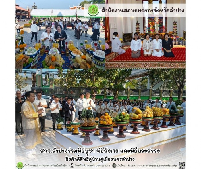 นางณิชรัศม์ แลวงค์นิล หัวหน้าสำนักงานสภาเกษตรกรจังหวัดลำปาง เข้าร่วมประกอบพิธีบูชา พิธีสังเวย และพิธีบวงสรวงสิ่งศักดิ์สิทธิ์คู่บ้านคู่เมืองนครลำปาง โดยมีนายพัชระ สิมะเสถียร รองผู้ว่าราชการจังหวัดลำปาง เป็นประธาน พร้อมด้วยหัวหน้าส่วนราชการ เจ้าหน้าที่จากหน่วยงานต่างๆ และประชาชนเข้าร่วมพิธีฯ