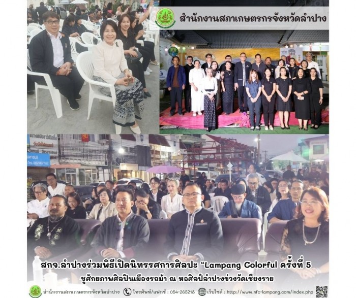 นางณิชรัศม์ แลวงค์นิล หัวหน้าสำนักงานสภาเกษตรกรจังหวัดลำปาง มอบหมายให้นางพรรณณี ลาดใจ นักจัดการงานทั่วไปปฎิบัติการ เข้าร่วมพิธีเปิดนิทรรศการศิลปะ “Lampang Colorful ครั้งที่ 5 ชูศักยภาพศิลปินเมืองรถม้า ณ หอศิลป์ลำปางข่วงวัดเชียงรายโดยมีนายรณรงค์ เทพรักษ์ รองผู้ว่าราชการจังหวัดลำปาง เป็นประธานพิธีเปิดกิจกรรมนิทรรศการแสดงผลงานศิลปะ "Lampang colorful ครั้งที่ 5 ณ หอศิลป์ลำปางข่วงวัดเชียงราย อำเภอเมืองลำปาง จังหวัดลำปาง โดยสำนักงานวัฒนธรรมจังหวัดลำปาง ร่วมกับ หอศิลป์ลำปางข่วงวัดเชียงราย จัดพิธีเปิดนิทรรศการแสดงผลงานศิลปะ “Lampang Colorful ครั้งที่ ๕” อย่างเป็นทางการ เพื่อขับเคลื่อนงานศิลปวัฒนธรรมและเปิดพื้นที่สร้างสรรค์ให้แก่ศิลปินและเยาวชนทั่วประเทศ